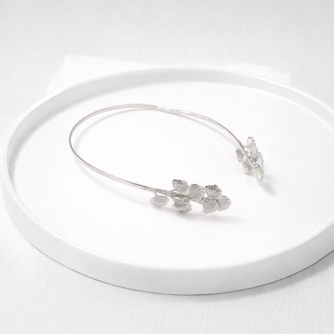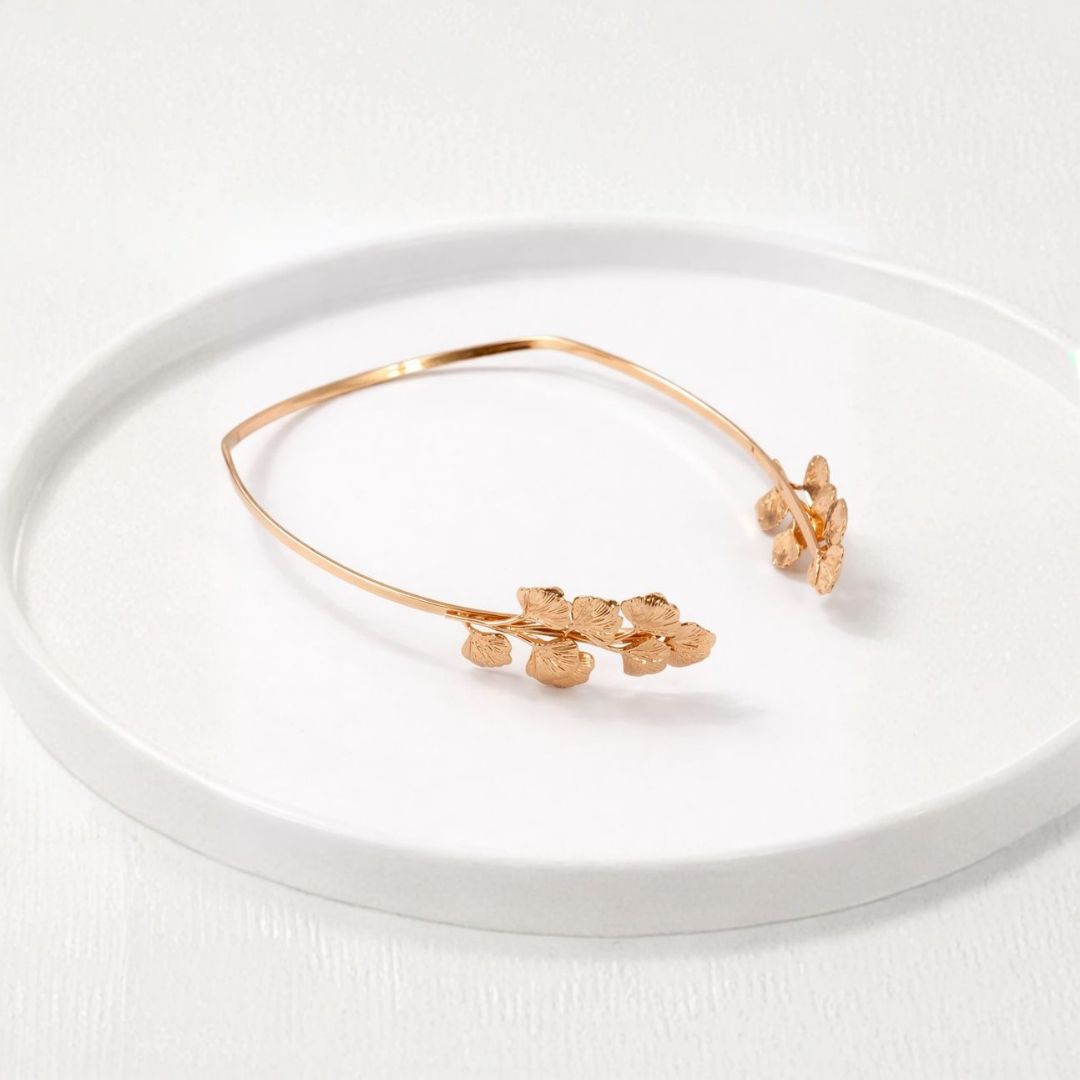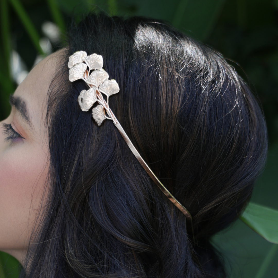 To wear, place the wings on the side of your head, allowing the fan of leaves to spread out and enhance your hairstyle. This piece provides a full and luxurious look. It's perfect for adding a bold yet beautiful touch to a simple hairstyle, whether you choose to wear your hair up or down.